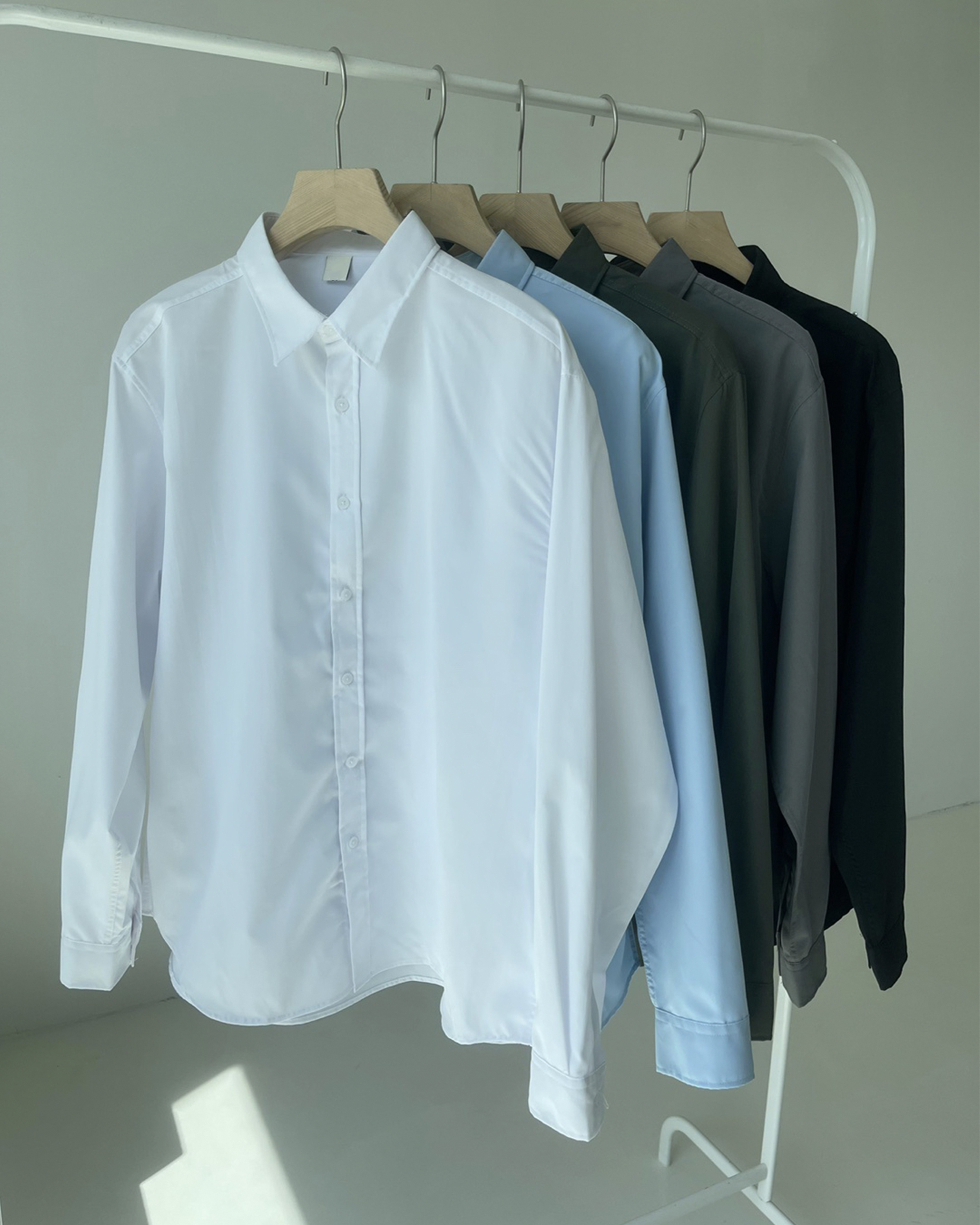 純色闊版型長袖恤衫|五色入