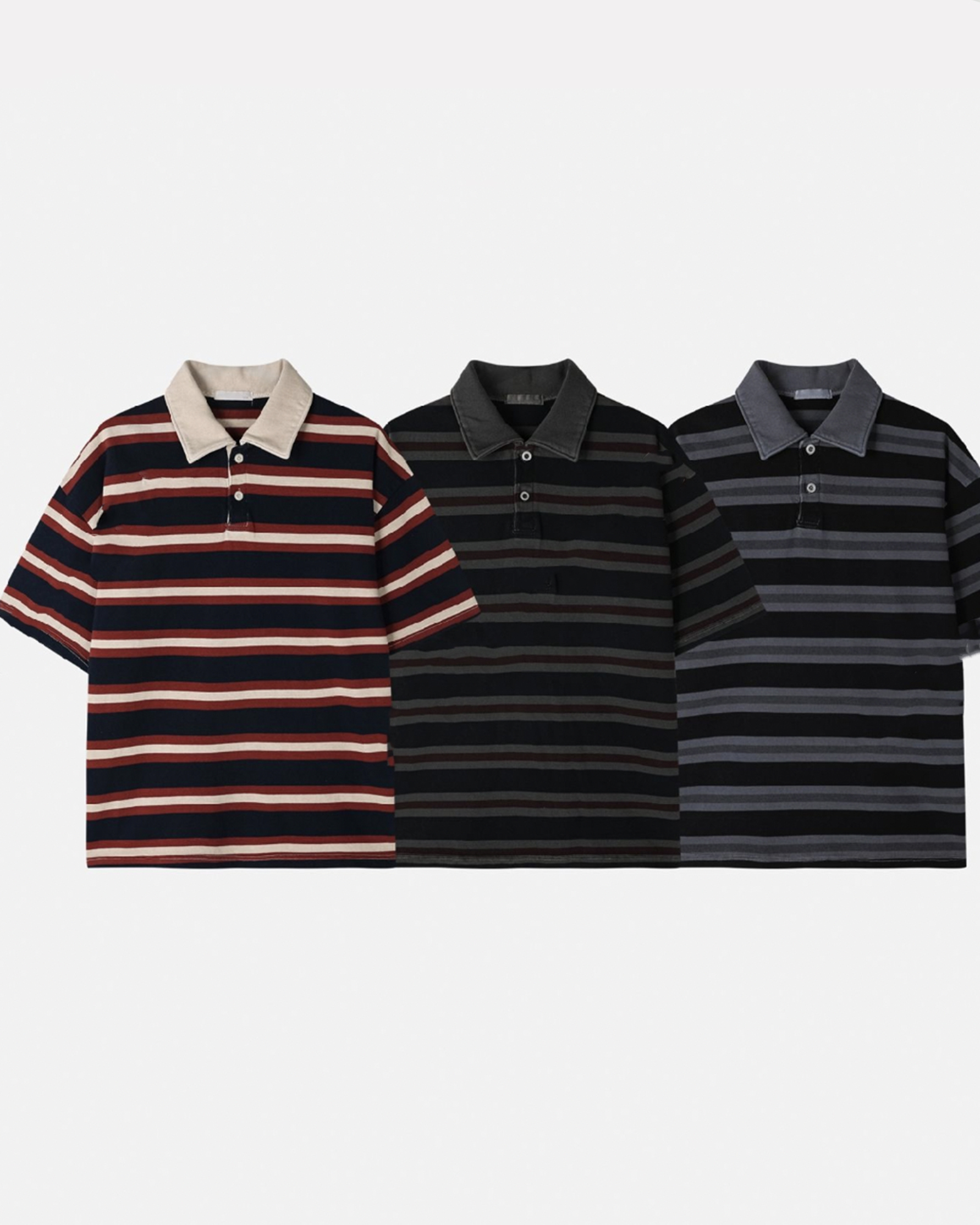 韓系重磅間條Polo上衣|三色入
