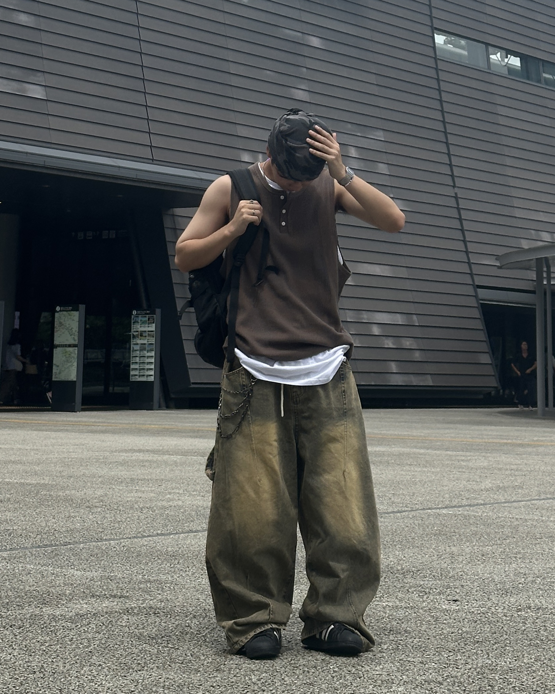 褲長 105cm|腰圍 33-48cm|褲襠 42cm|大腿圍 36cm|褲口寬 28cm